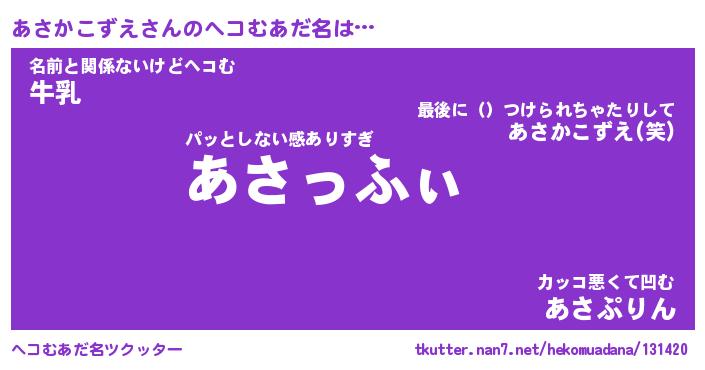 | ポケモン風あだ名 | 『アサチュウ』『アサカダネ』 |