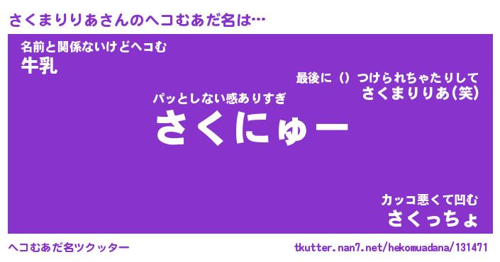 | ヒーロー風カッコイイあだ名 | 『スーパーサクマリリア』『暗黒騎士サク』 |