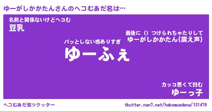 | 2回繰り返すあだ名 | 『ゆーゆー』『ゆゆーー』『ぬめぬめ』 |