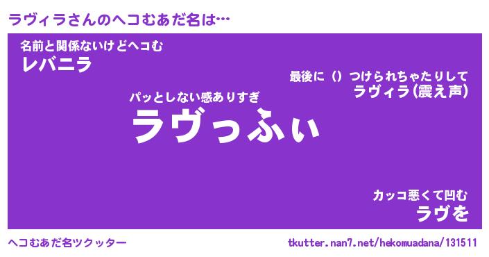 | 男性向けラノベタイトル風あだ名 | 『ラヴィラの憂鬱』 |