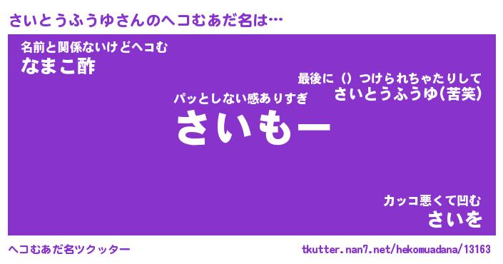 | 恥ずかしいあだ名 | 『プリティーさいとうふうゆ』『さいちん』 |