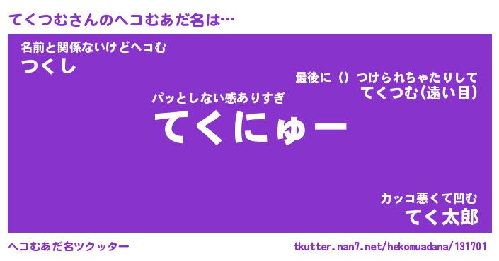 | 意味不明あだ名 | 『ペロリンてくつむ』『永久保存てくつむ』 |
