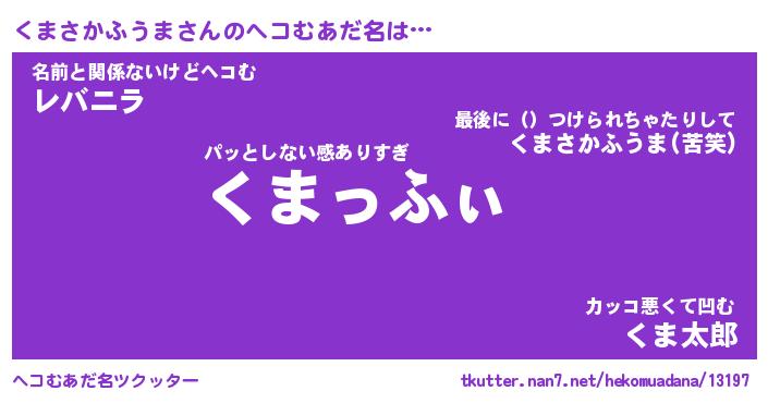 | ヒーロー風カッコイイあだ名 | 『スーパークマサカフウマ』 |