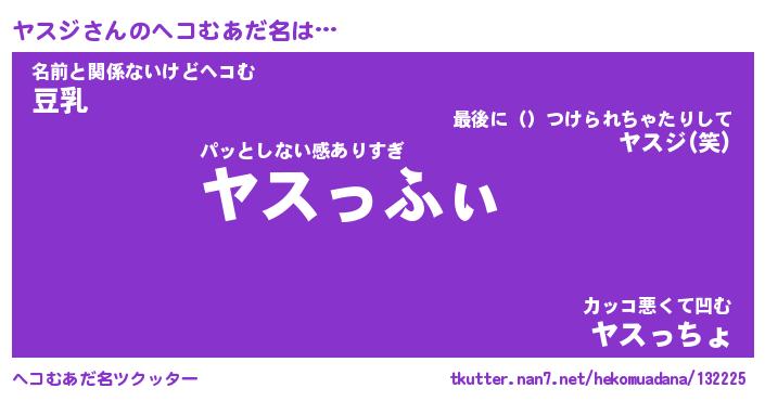 | 2回繰り返すあだ名 | 『ヤスヤス』『ヤヤスス』『いそいそ』 |