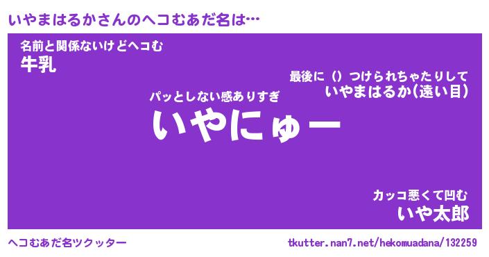 | 恥ずかしいあだ名 | 『プリティーいやまはるか』『いやっちょ』 |