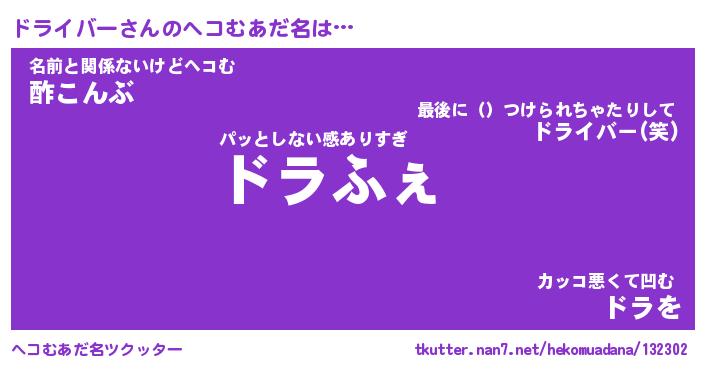 | ファンタジー風あだ名 | 『ドラフェル』『エターナルドライバーー』 |
