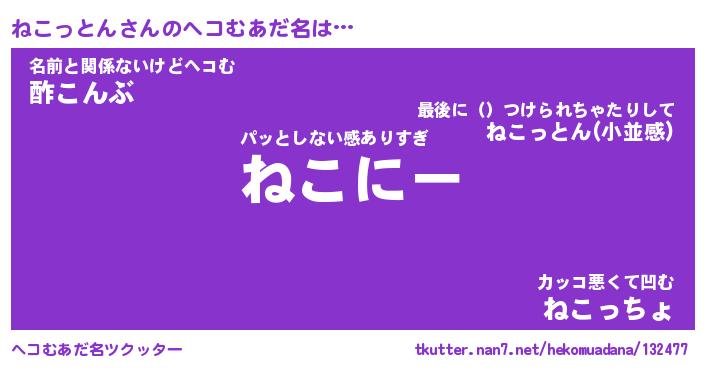 | 欧米人風あだ名 | 『マイケルねこっとん』 |