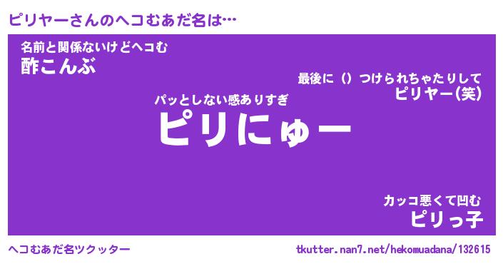 | ファンタジー風あだ名 | 『ピリフェル』『エターナルピリヤーー』 |