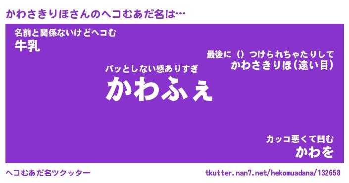| 2回繰り返すあだ名 | 『かわかわ』『かかわわ』『ぬめぬめ』 |