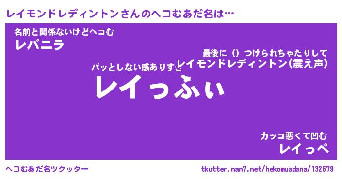 | 男性向けラノベタイトル風あだ名 | 『レイモンドレディントンの憂鬱』 |