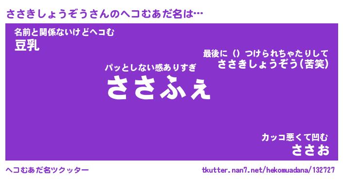 | ヒーロー風カッコイイあだ名 | 『スーパーササキショウゾウ』 |