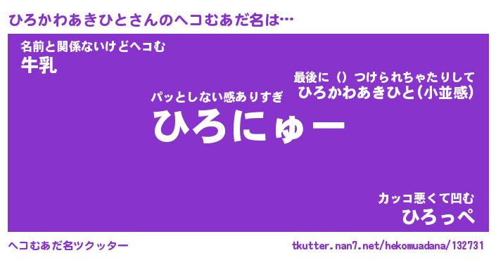 | 肩書あだ名 | 『ひろかわあきひと店長』 |