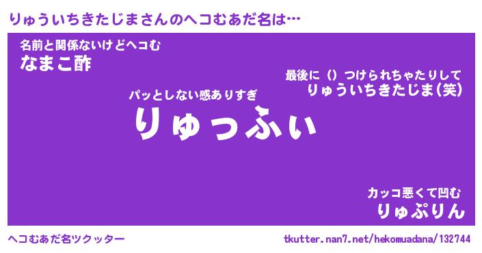 | ヒーロー風カッコイイあだ名 | 『スーパーリュウイチキタジマ』 |