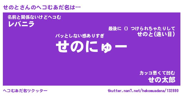 | 意味不明あだ名 | 『ペロリンせのと』『せのとフォーエバー』 |