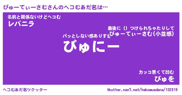 | ポケモン風あだ名 | 『ビュチュウ』『ビューダネ』 |