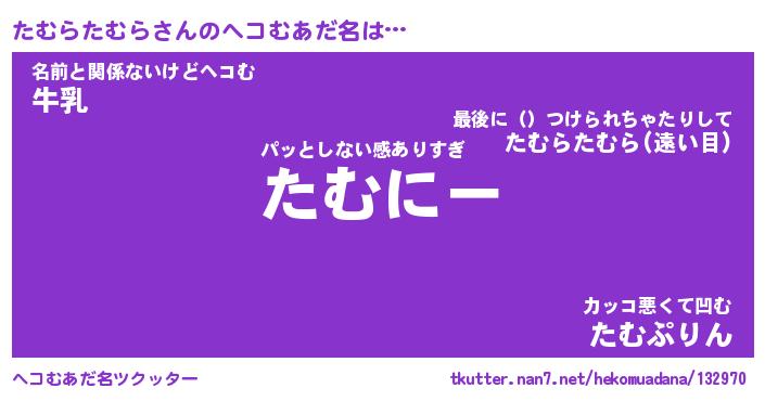 | 2回繰り返すあだ名 | 『たむたむ』『たたむむ』『なあなあ』 |