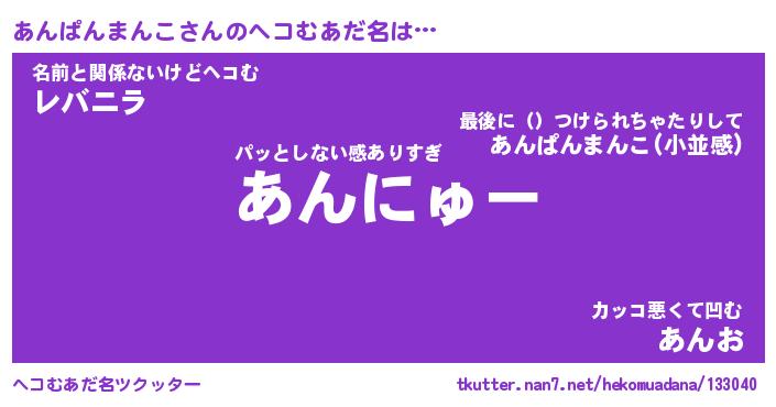 | ポケモン風あだ名 | 『アンチュウ』『アンパダネ』 |