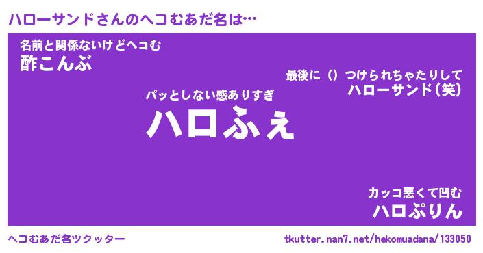 | ヒーロー風カッコイイあだ名 | 『スーパーハローサンド』『暗黒騎士ハロ』 |