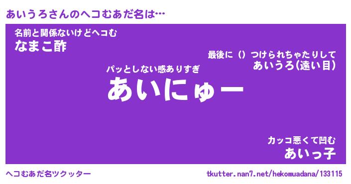 | 男性向けラノベタイトル風あだ名 | 『あいうろの憂鬱』 |