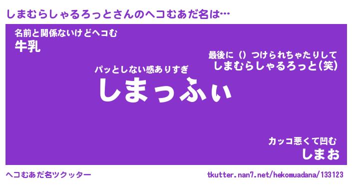 | 恥ずかしいあだ名 | 『プリティーしまむらしゃるろっと』 |