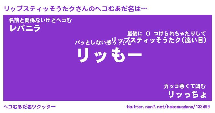 | 2回繰り返すあだ名 | 『リッリッ』『リリッッ』『くらくら』 |