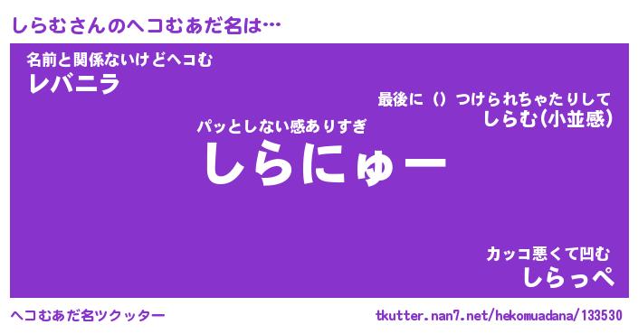| 意味不明あだ名 | 『ペロリンしらむ』『しらむフォーエバー』 |