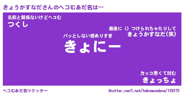| 恥ずかしいあだ名 | 『プリティーきょうかすなだ』『きょちん』 |