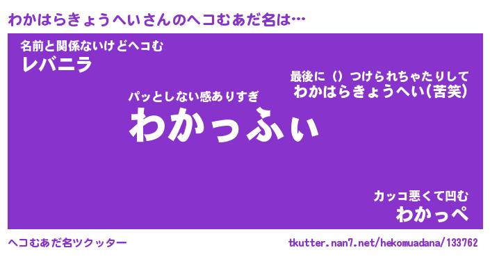 | 胡散臭い通販商品みたいなあだ名 | 『必ず成功する霊験あらたかなお札…その名も「わかはらきょうへい」』 |