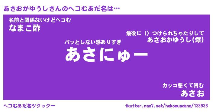 | ポケモン風あだ名 | 『アサチュウ』『アサオダネ』 |