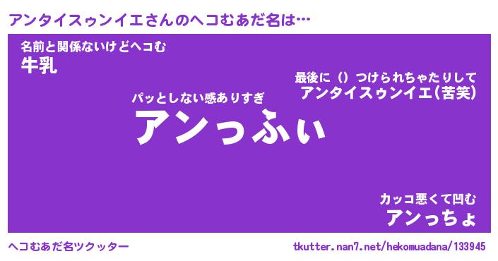 | ヒーロー風カッコイイあだ名 | 『スーパーアンタイスゥンイエ』 |