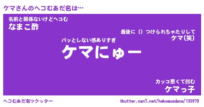| ポケモン風あだ名 | 『ケマチュウ』『ケマダネ』『ヒケマ』 |