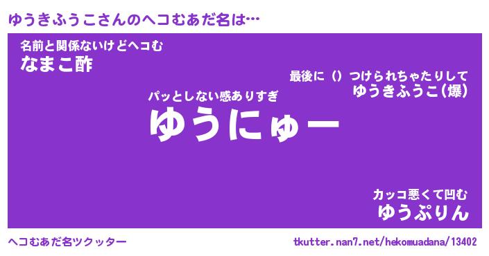 | 男性向けラノベタイトル風あだ名 | 『ゆうきふうこの憂鬱』 |