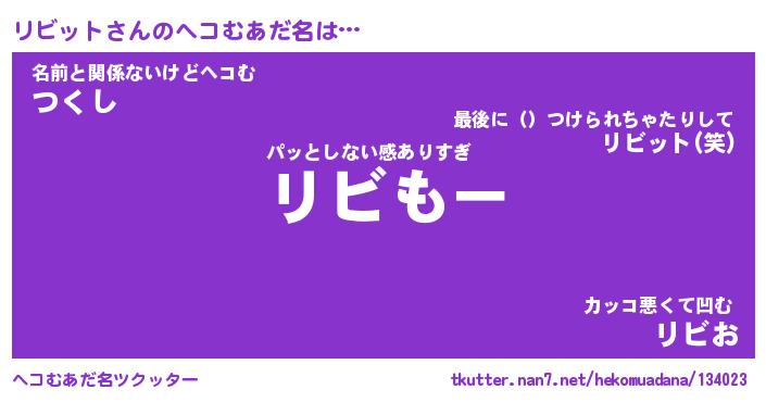 | 意味不明あだ名 | 『ペロリンリビット』『永久保存リビット』 |