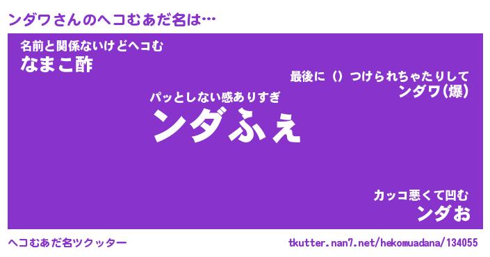 | 2回繰り返すあだ名 | 『ンダンダ』『ンンダダ』『あんあん』 |
