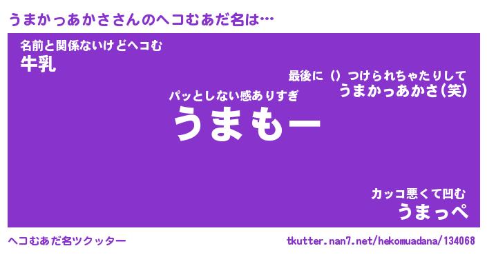 | 2回繰り返すあだ名 | 『うまうま』『ううまま』『ぐねぐね』 |