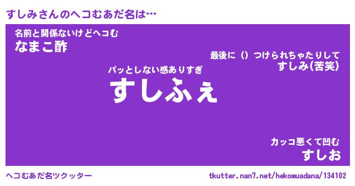 | 意味不明あだ名 | 『ペロリンすしみ』『すしみフォーエバー』 |