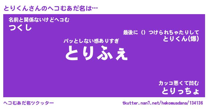 | 意味不明あだ名 | 『ペロリンとりくん』『永久保存とりくん』 |