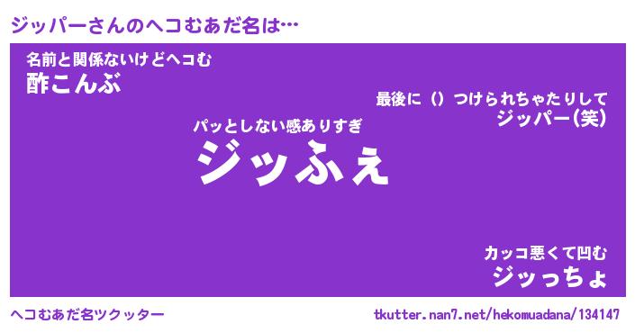 | ファンタジー風あだ名 | 『ジッフェル』『エターナルジッパーー』 |