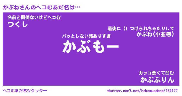 | 2回繰り返すあだ名 | 『かぶかぶ』『かかぶぶ』『うずうず』 |