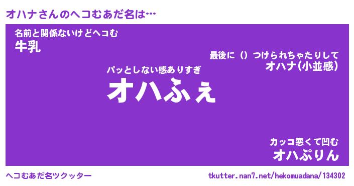 | ファンタジー風あだ名 | 『オハフェル』『エターナルオハナー』 |