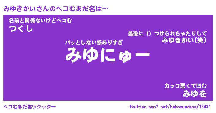 | ファンタジー風あだ名 | 『ミユフェル』『エターナルミユキカイー』 |
