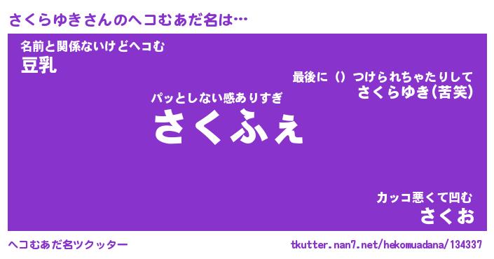 ファンタジー風あだ名 | 『サクフェル』『エターナルサクラユキー』 |