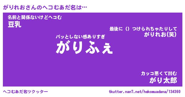 | 意味不明あだ名 | 『ペロリンがりれお』『永久保存がりれお』 |