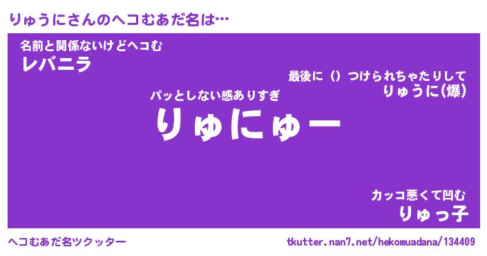 | 意味不明あだ名 | 『ペロリンりゅうに』『永久保存りゅうに』 |