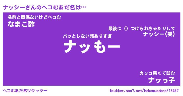| 2回繰り返すあだ名 | 『ナッナッ』『ナナッッ』『がやがや』 |