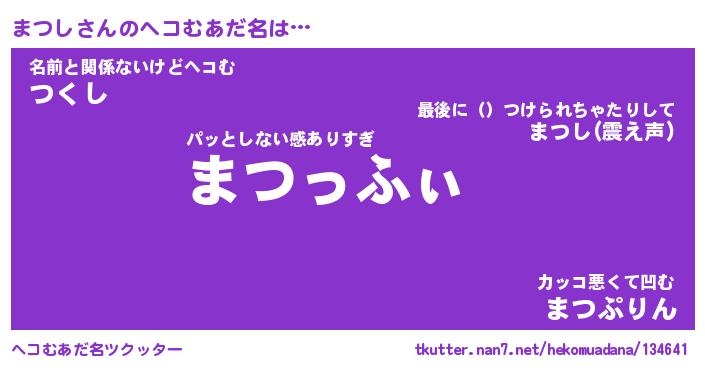 | 意味不明あだ名 | 『ペロリンまつし』『まつしフォーエバー』 |