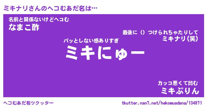| 意味不明あだ名 | 『ペロリンミキナリ』『永久保存ミキナリ』 |