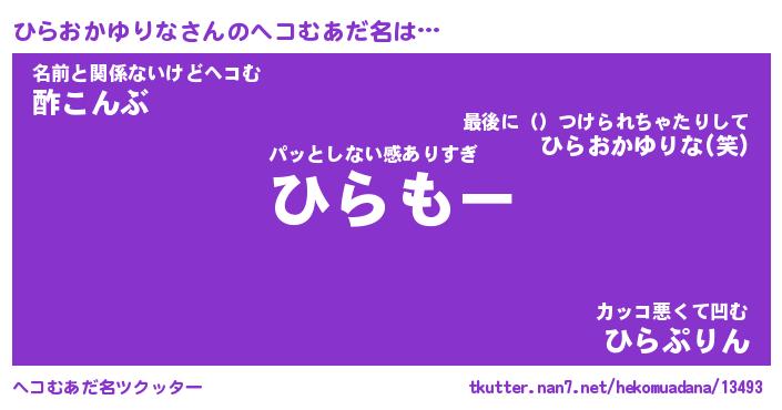 | 意味不明あだ名 | 『ペロリンひらおかゆりな』 |