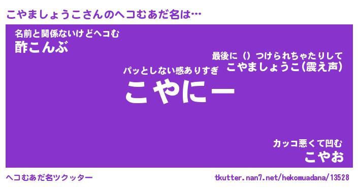 | 欧米人風あだ名 | 『マイケルこやましょうこ』 |