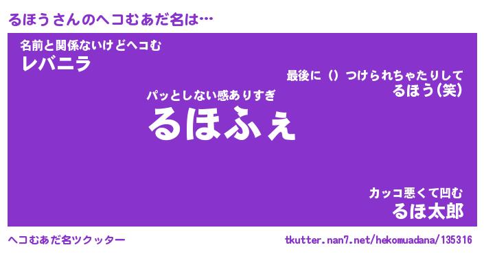 | 意味不明あだ名 | 『ペロリンるほう』『るほうフォーエバー』 |